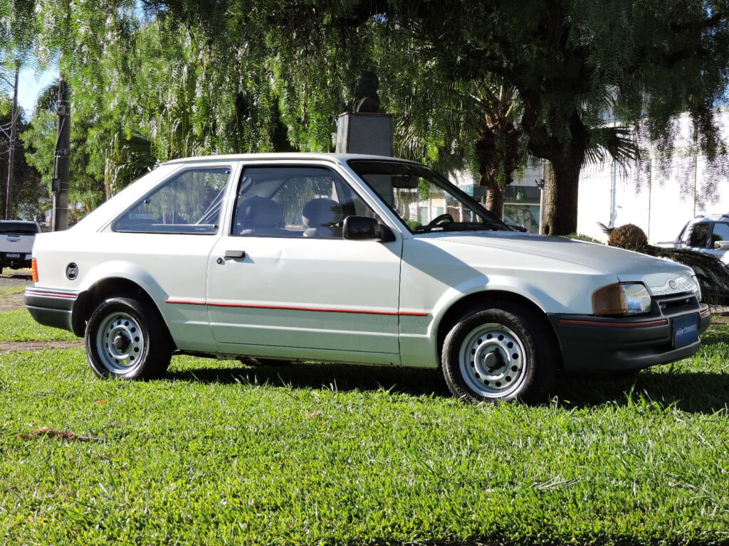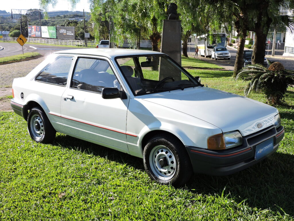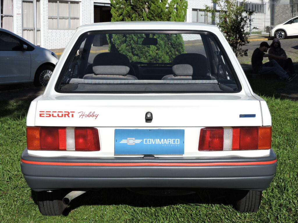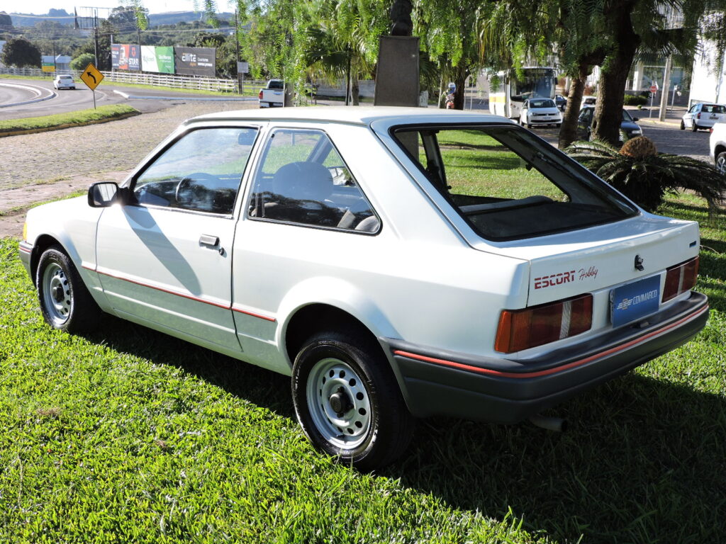 Com a alta do mercado dos carros populares e os expressivos números de vendas dos concorrentes, em fins de 1993 a Ford lança o Escort Hobby como a versão de entrada para se encaixar neste segmento, com preço competitivo, rapidamente atingindo o objetivo com sucesso. Exemplar de 1994, na tradicional tonalidade Branco Diamante. Carro original e bem cuidado, alinhado. Interior todo original em excelente estado, mecânica em ordem. Possui manual do proprietário, nota fiscal de compra, chave cópia e demais folhetos, pneu de estepe F570 original.
