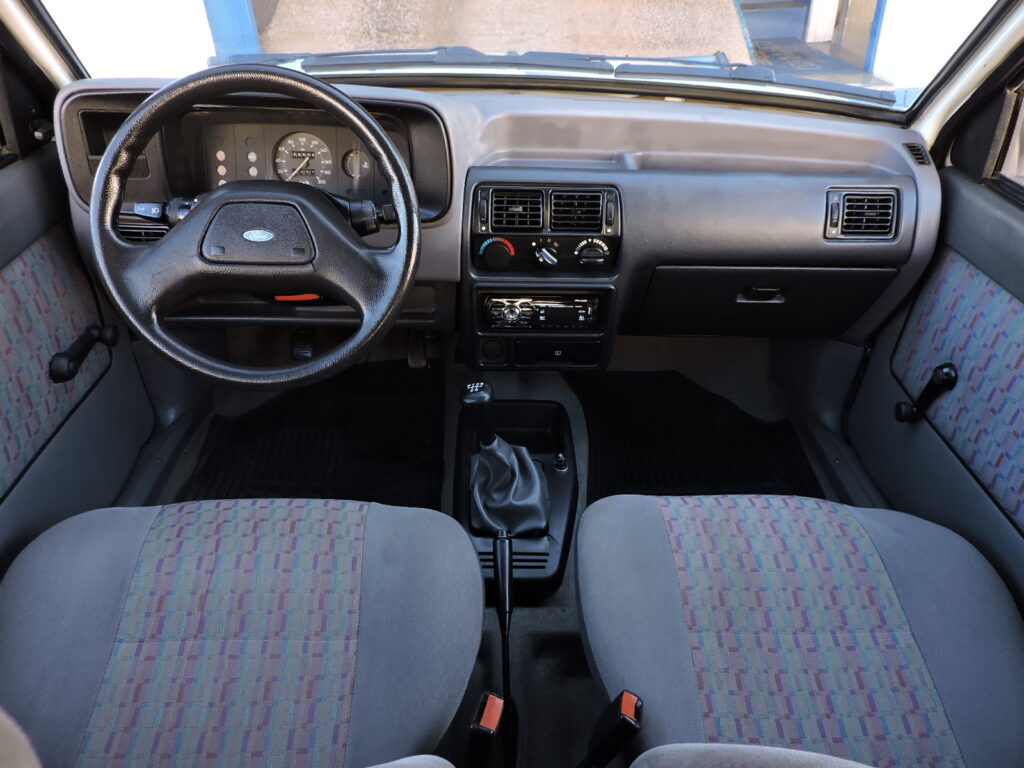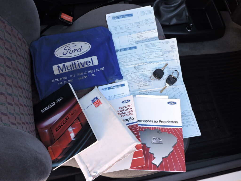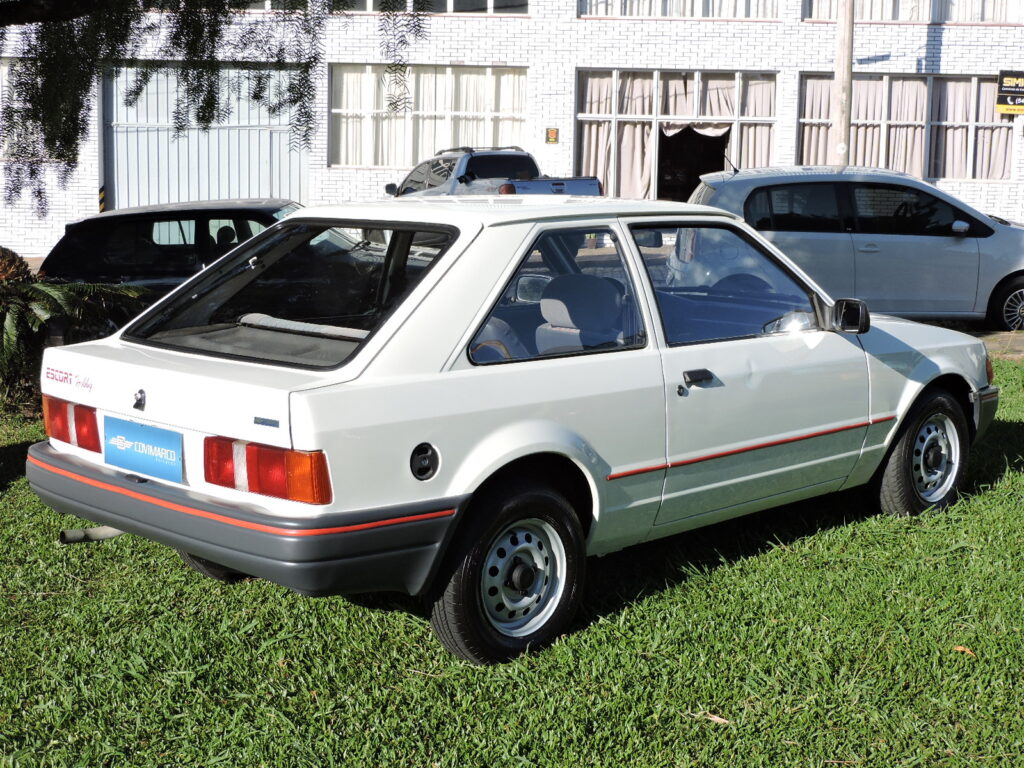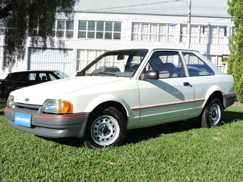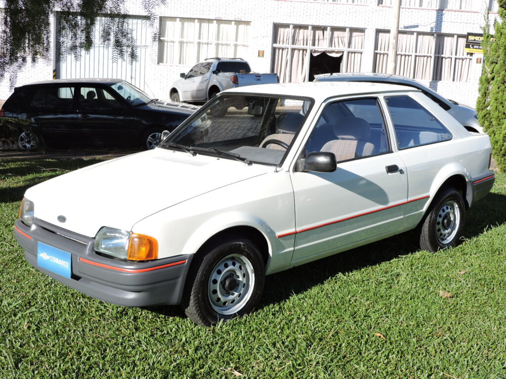 Com a alta do mercado dos carros populares e os expressivos números de vendas dos concorrentes, em fins de 1993 a Ford lança o Escort Hobby como a versão de entrada para se encaixar neste segmento, com preço competitivo, rapidamente atingindo o objetivo com sucesso. Exemplar de 1994, na tradicional tonalidade Branco Diamante. Carro original e bem cuidado, alinhado. Interior todo original em excelente estado, mecânica em ordem. Possui manual do proprietário, nota fiscal de compra, chave cópia e demais folhetos, pneu de estepe F570 original.