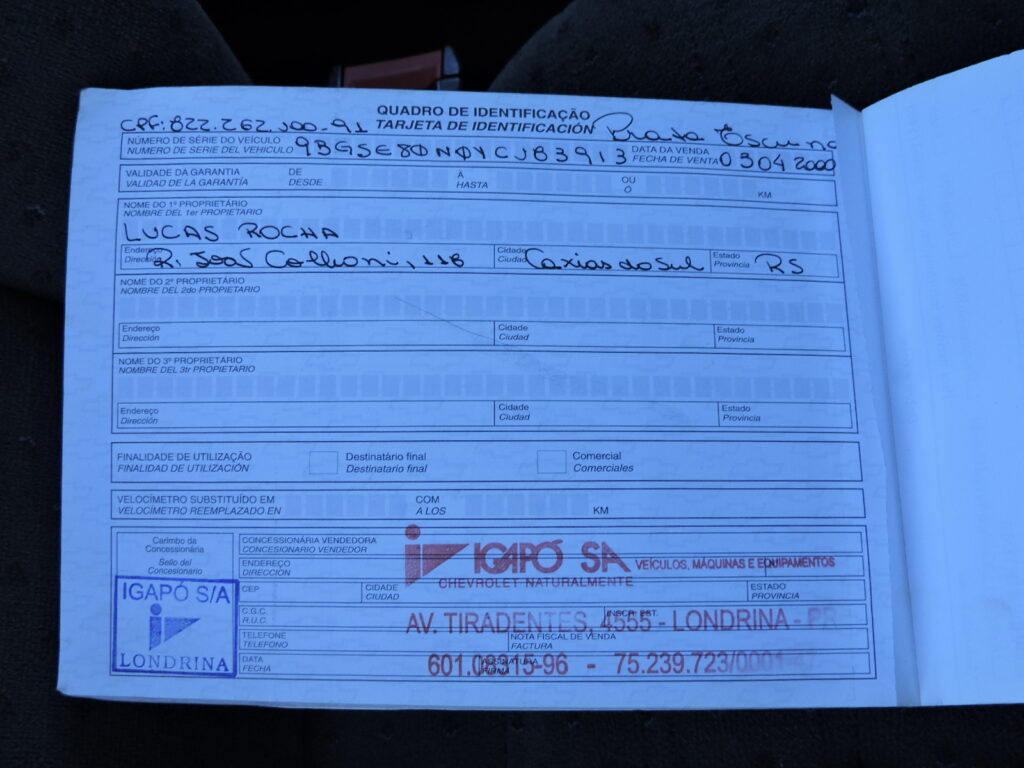 - Modelo: PICKUP CORSA GL 1.6 MPFI 8V